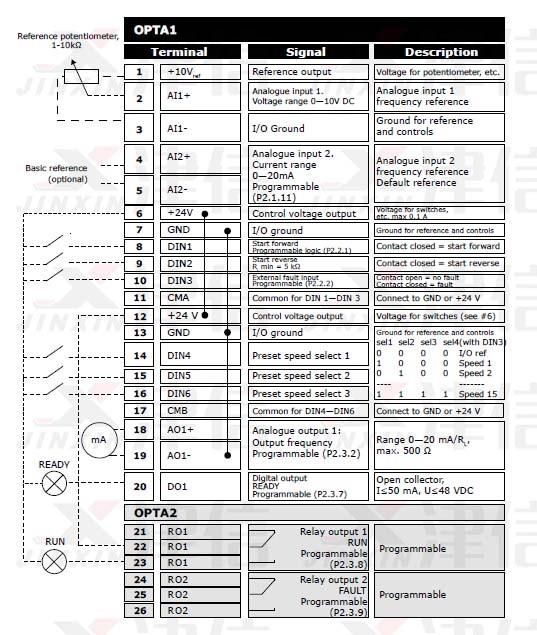 ·       VACON偉肯20系列變頻器接線圖
