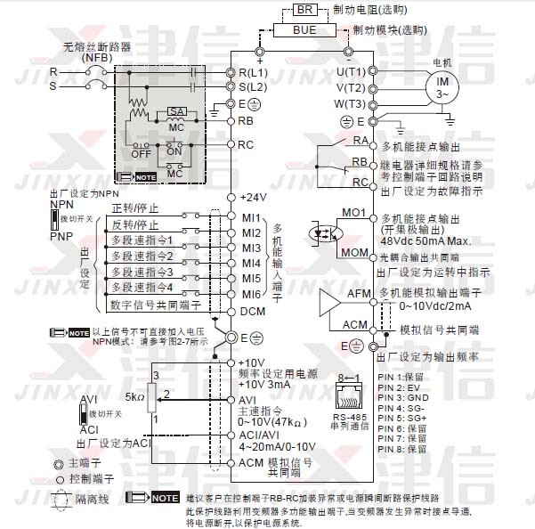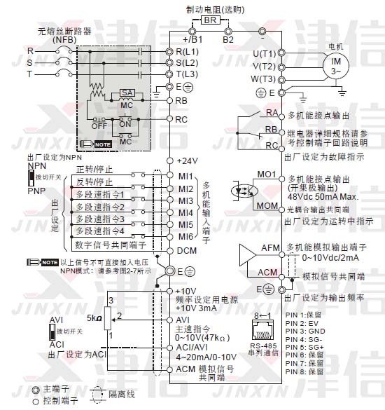 DELTA臺達VFD-E變頻器接線圖和接線注意事項