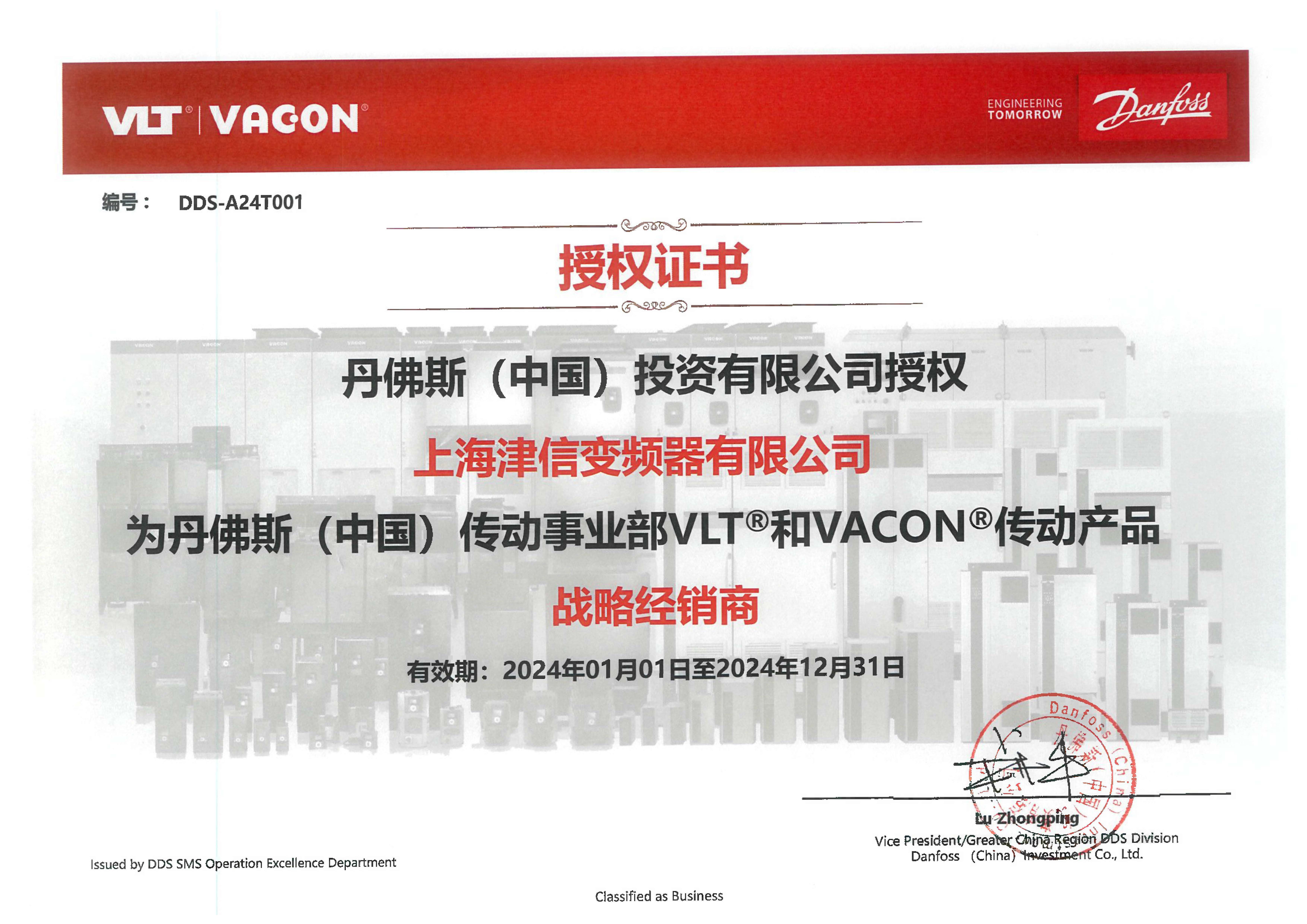 丹佛斯戰(zhàn)略經(jīng)銷商證書(shū)