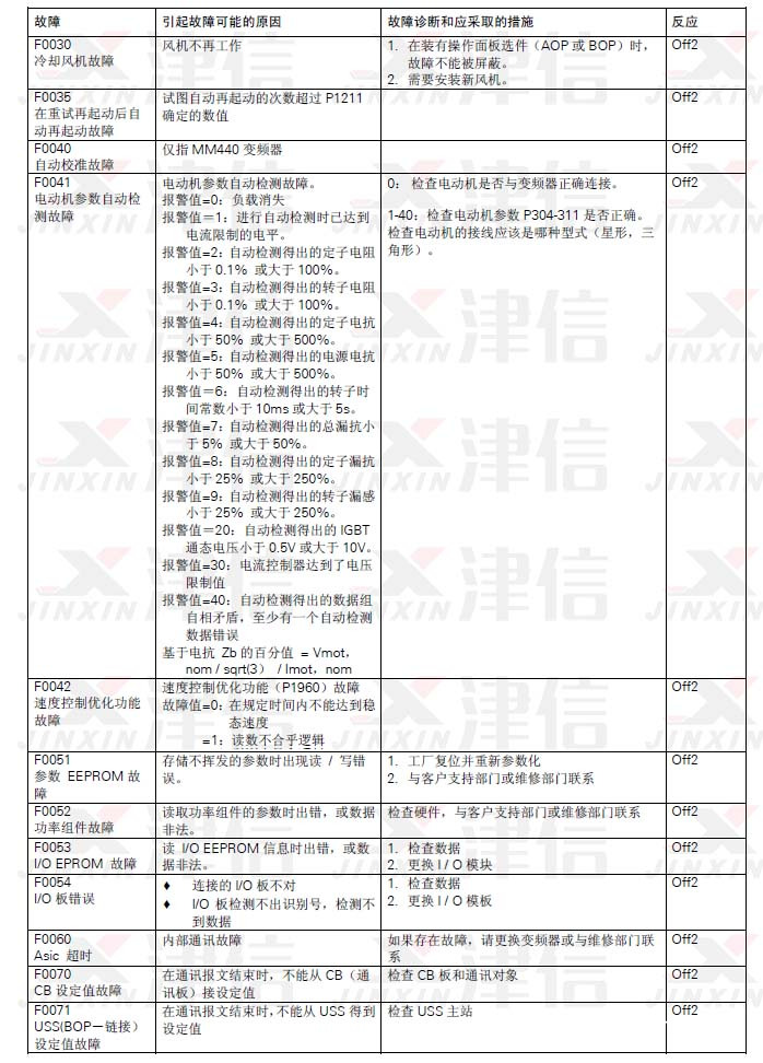 三、F0030冷卻風機故障,F0035自動重起,F0040自動校準,F0041自動檢測故障,F0042故障,F0051,F0052,F0053,F0054,F0060,F0070,F0071